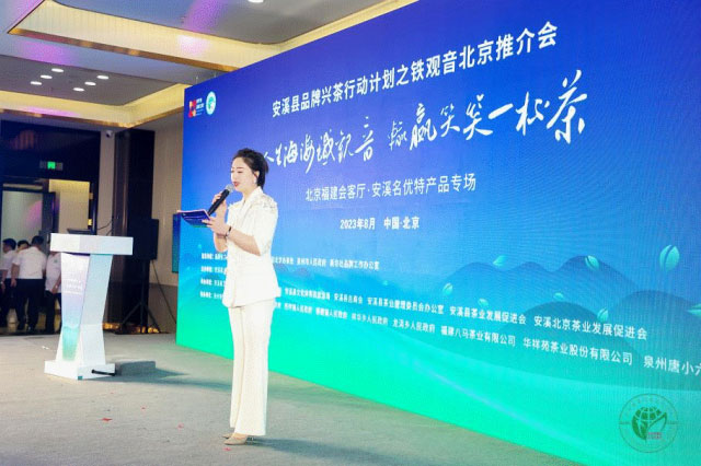 8月5日上午,“安溪县品牌兴茶行动计划之铁观音北京推介会暨北京(福建)会客厅•安溪名优特产品专场”活动在北京福建大厦举办。受王庆会长委托,中国茶叶流通协会副会长梅宇出席本次活动并致辞。
