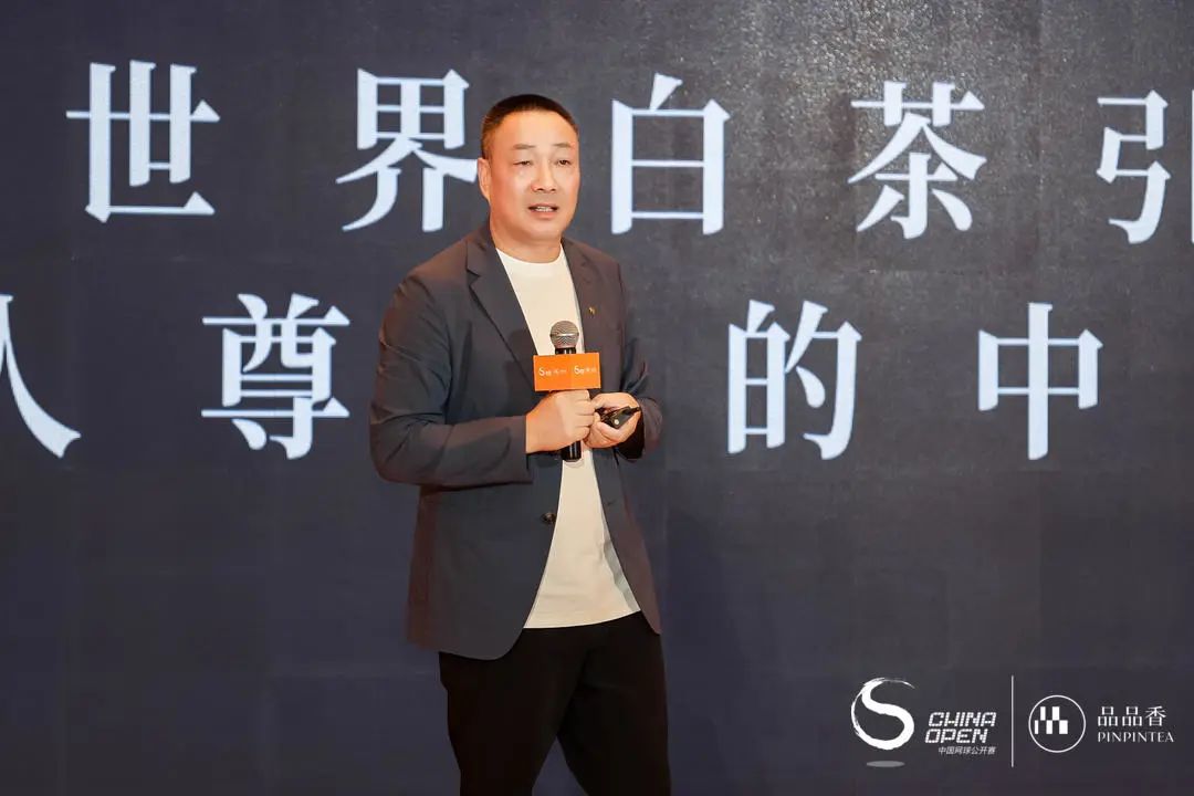 中国茶叶流通协会副会长、国家级技能大师工作室领办者、福鼎白茶非物质文化遗产代表性传承人、福建品品香茶业有限公司董事长林振传以《一杯白茶·美好世界》为题,进行了精彩的演讲。他表示:品品香于2023-2025连续三年作为中国网球公开赛独家茶叶合作伙伴,向世界传播了中国茶文化,不遗余力倡导运动健康喝白茶的美好生活方式。