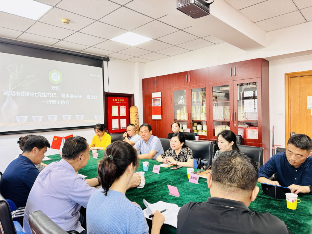 9月1日,中国茶叶流通协会会长、全国茶叶标准化技术委员会主任委员王庆会见了芜湖市供销社党组书记、理事会主任查永红一行。双方围绕芜湖市茶产业发展现状,茶业上下游资源链接与茶叶市场现代化建设深入交换意见。中国茶叶流通协会副会长梅宇,秘书长肖星,芜湖市供销社党组成员、理事会副主任胡光铭,中国茶叶流通协会常务理事、安徽瑞丰投资集团总裁张大金及有关部门领导参加了座谈。
