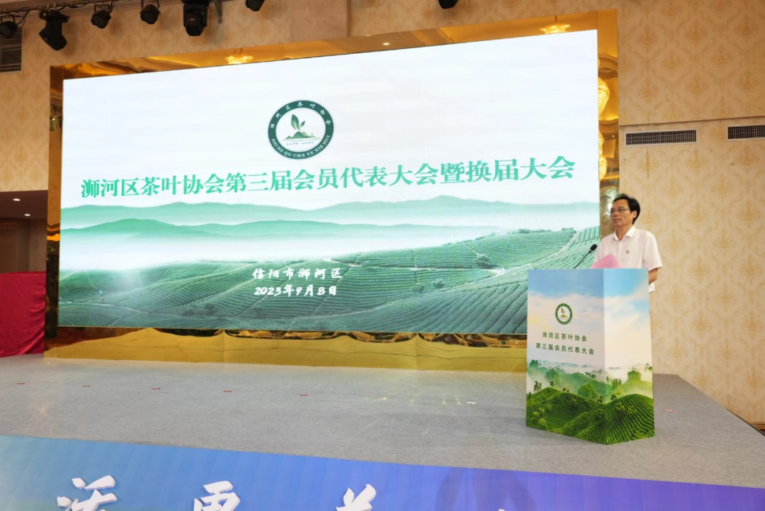 9月8日,信阳市浉河区茶叶协会第三届会员代表大会暨换届大会在信阳市浉河区举行。信阳市、浉河区相关部门负责人及浉河区茶叶协会全体会员代表共200余人参会。受王庆会长委托,中国茶叶流通协会副会长姚静波出席会议并致辞、宣读贺信。