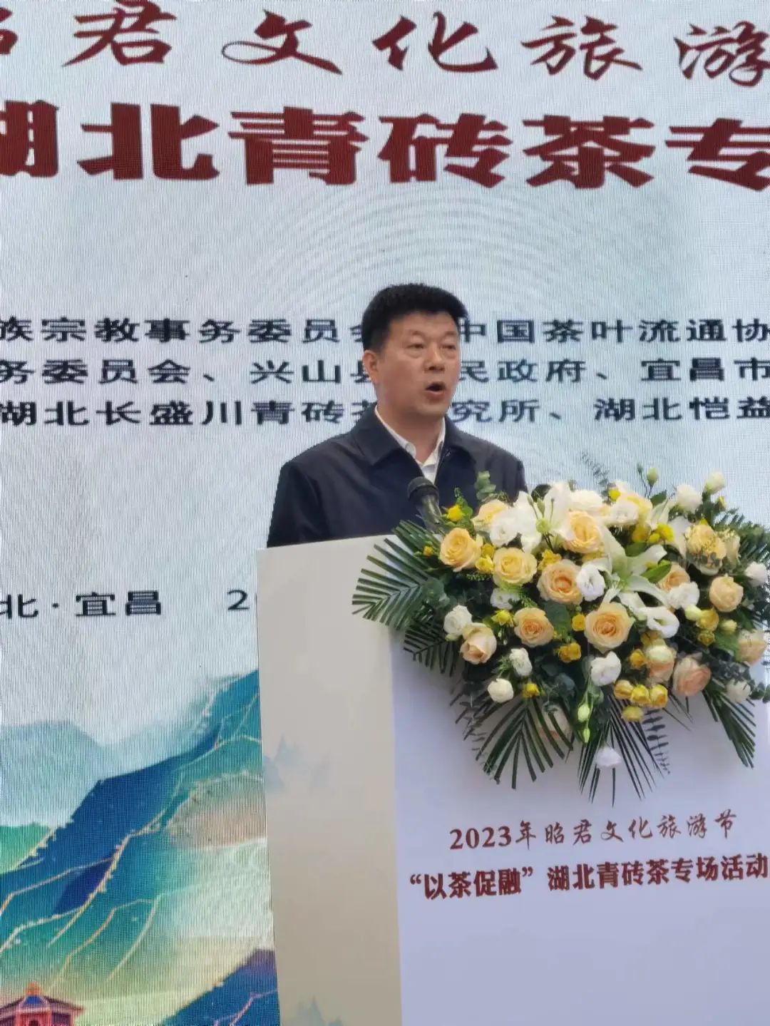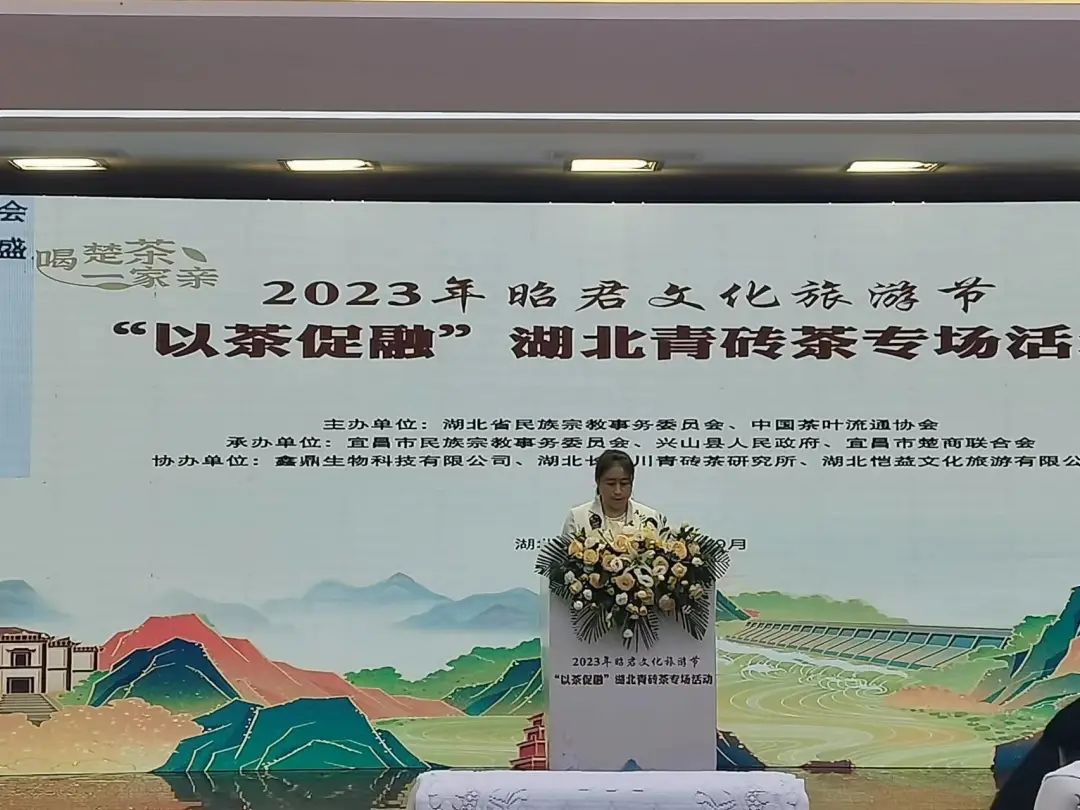 9月24日,由中国茶叶流通协会和湖北省民族宗教事物委员会共同主办“以茶促融 湖北青砖茶专场活动”在湖北宜昌举行,本次活动共邀请了国家民委、湖北、内蒙古、西藏、青海、甘肃、宁夏、新疆六省(自治区)民宗委领导和企业代表近100人参加了本次活动,受中国茶叶流通协会王庆会长委托,姚静波副会长出席了本次活动并致辞。