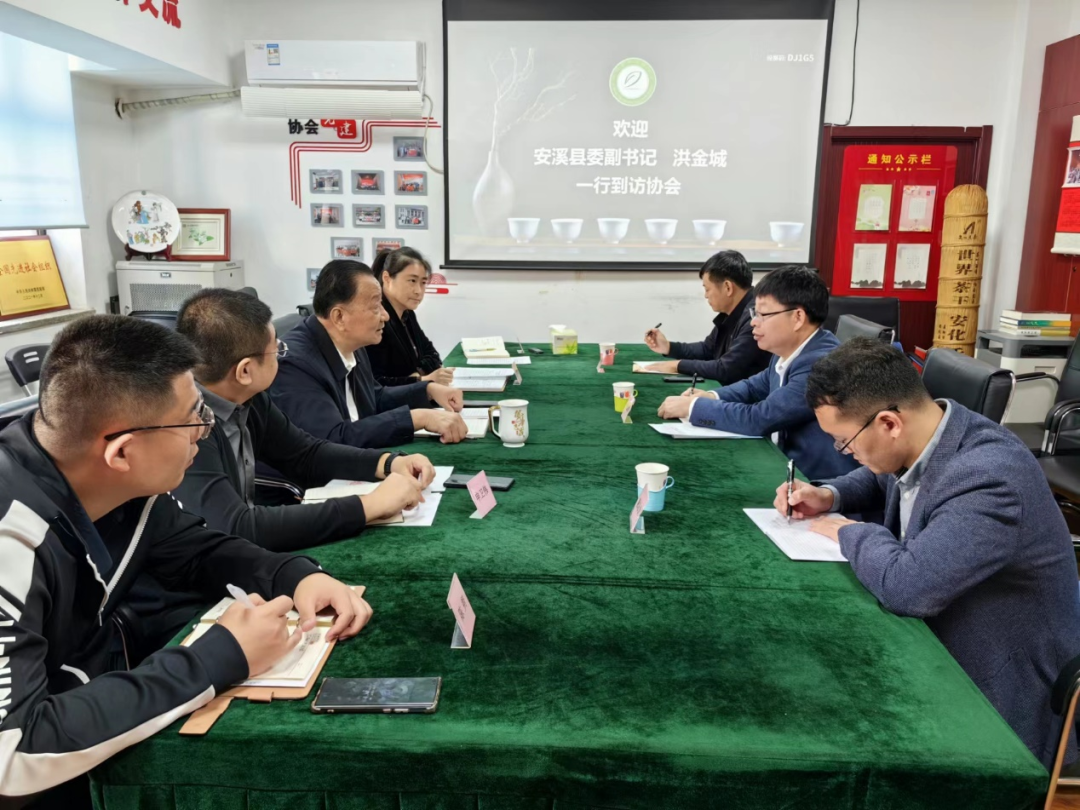 2023年10月24日上午, 中国茶叶流通协会会长、全国茶叶标准化技术委员会主任委员王庆会见安溪县委副书记洪金城一行。双方就安溪茶产业发展、未来规划进行深入交流。中国茶叶流通协会副会长姚静波,副监事长申卫伟,安溪县茶业发展中心主任林清杰,安溪县委办副主任谢志龙参加座谈。