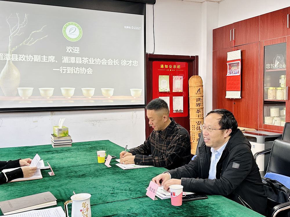 2023年11月13日,中国茶叶流通协会会长、全国茶叶标准化技术委员会主任委员王庆会见了湄潭县政协副主席、湄潭县茶业协会会长徐才忠一行。双方围绕湄潭县茶叶区域公用品牌建设、市场发展以及茶事活动合作事项等内容深入交换意见。中国茶叶流通协会副会长姚静波,湄潭县茶产业发展中心主任、湄潭县茶业协会秘书长杨冬等领导同志参加了座谈。