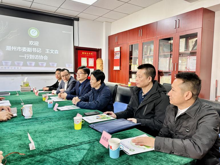 2023年11月12日,中国茶叶流通协会会长、全国茶叶标准化技术委员会主任委员王庆会见了潮州市委副书记王文森一行。双方就潮州市茶叶龙头企业培育、茶叶产业链延伸以及未来的合作事项等内容进行了深入探讨和交流。中国茶叶流通协会副会长姚静波、副监事长申卫伟,潮州市委副秘书长曾伟华、潮州市驻京办主任林经秋等潮州市有关部门领导同志参加了座谈。