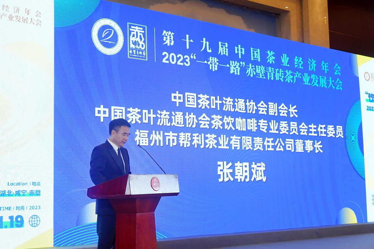 中国茶叶流通协会副会长、茶饮咖啡专业委员会主任委员 福州市帮利茶业有限责任公司董事长张朝斌致辞