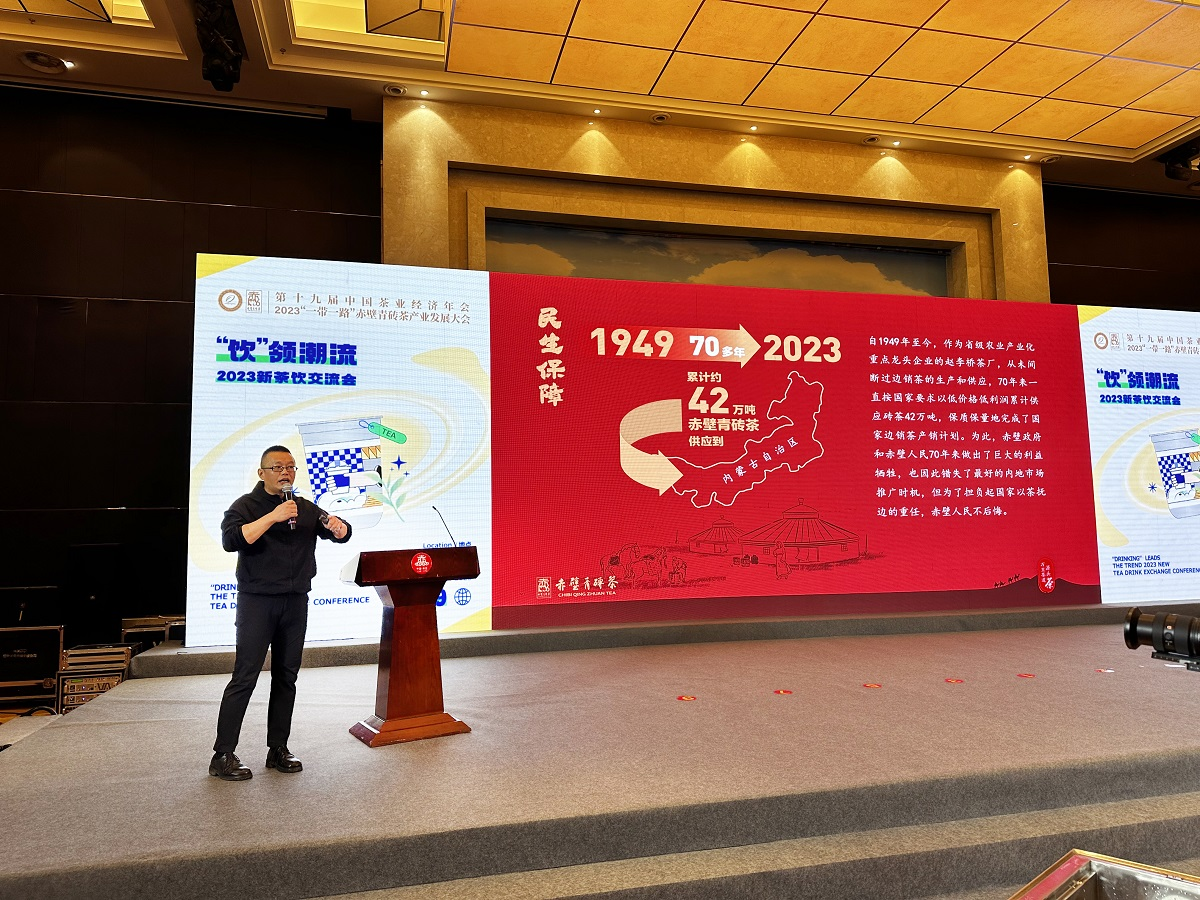湖北青砖茶产业发展集团营销总监肖亚松作题为《赤壁青砖茶—“最古老的新茶饮”》
