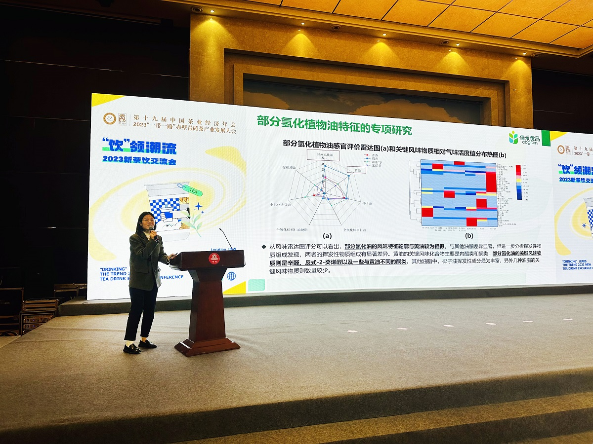 中茶协茶咖委副主任委员单位、佳禾食品产品经理樊田利作题为《传统茶饮的健康创新》