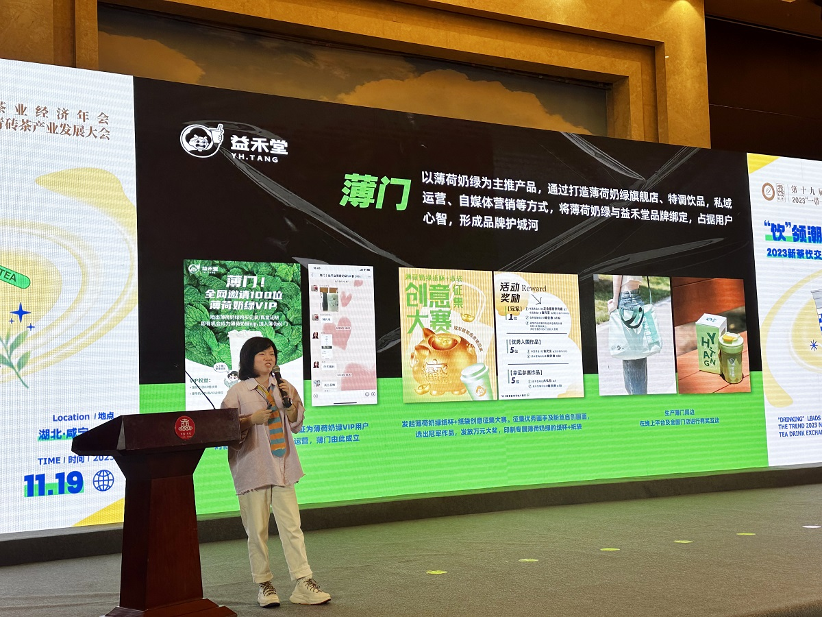 中茶协茶咖委副主任委员单位、益禾堂品牌总监陈英婕作题为《一杯轻乳茶里的东方“益”趣》主题分享