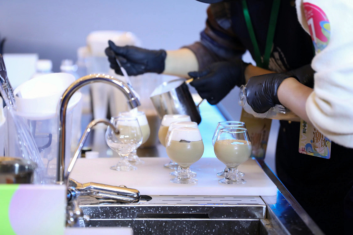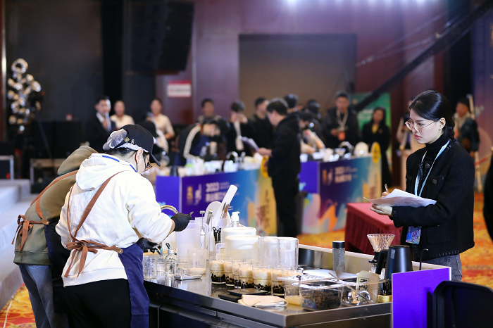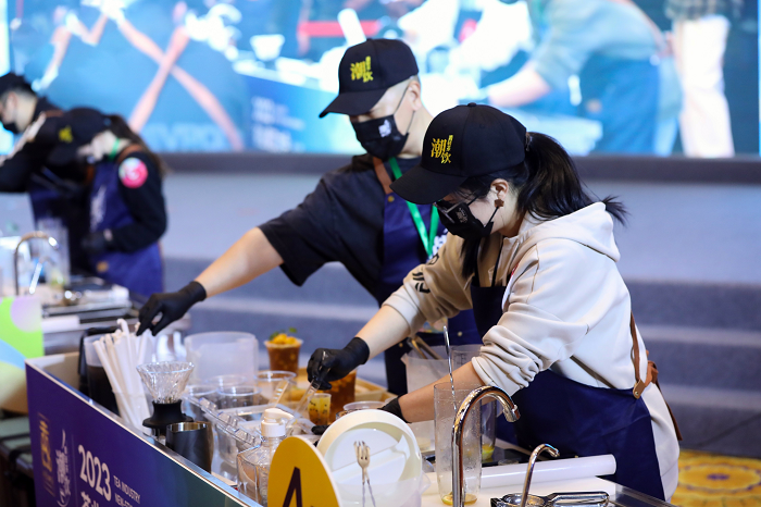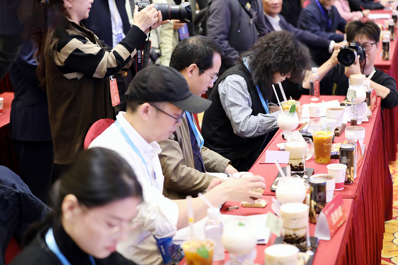 此次大赛邀请到来自奈雪的茶、茶颜悦色、帮利茶业等单位的新茶饮领域研发专家组成裁判委员会,围绕制作技巧、创新能力、风味指标、视觉、产品表达等因素进行现场点评和指导,活动现场高潮不断。