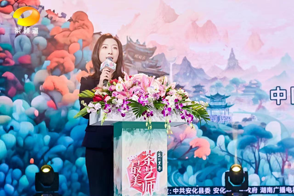 肖星秘书长在致辞中表示:由湖南广播电视台茶频道打造的《最美茶艺师》节目至今已经成功举办了五季,一批又一批中华茶文化的优秀传播者从中诞生,将茶文化的种子播撒向世界各地。最美茶艺师们用时代的创新视角,将历史中、古道上、杯盏里最负盛名的安化黑茶,淋漓尽致的展现!近十年来,安化县委、县政府立足资源禀赋,整合特色资源,举全县之力推动当地黑茶产业发展,通过一系列的黑茶科技创新和成果转化推广,安化黑茶产业实现了全面振兴,成为安化名副其实的第一产业、特色优势产业和乡村振兴的支柱产业,创造了助力产业脱贫的“安化模式”,让“一片树叶成就一个产业、富裕一方百姓”成为了现实,希望如《最美茶艺师》此类传播中国优秀茶文化的节目能够更多地出现在大众的视野中。
