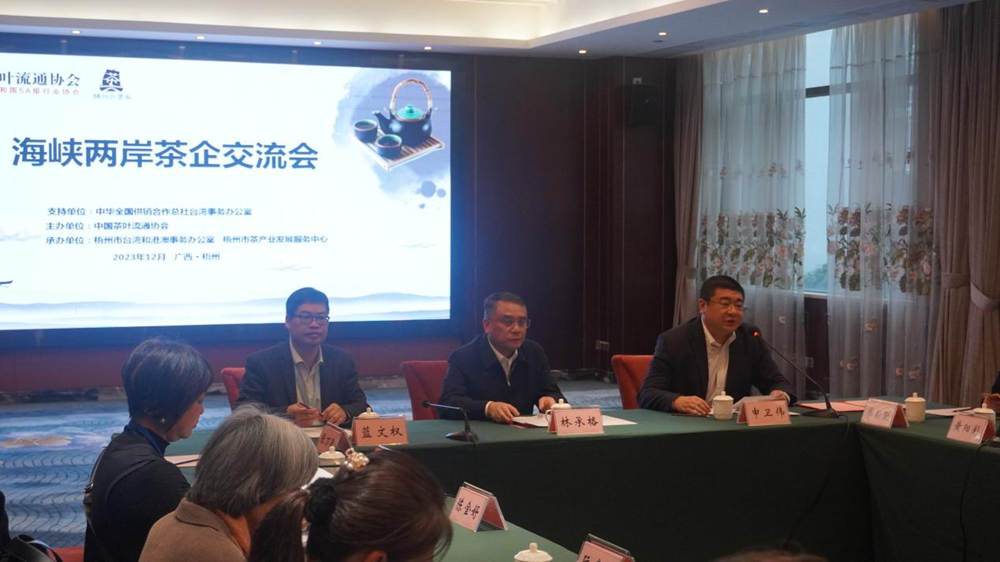 台湾大学园艺暨景观学系教授、台湾茶叶学会秘书长陈右人,台湾区制茶工业同业公会荣誉理事长陈振芳、台湾区茶输出业同业公会理事吴元鑫,以及广西梧州茶厂代表、广西梧州开羽六堡茶公司代表等两岸茶界人士纷纷围绕茶树品种种植改良、两岸茶企品牌做大做强、畅通两岸贸易流通、新茶饮探索融合发展、茶叶质量安全等多方面展开了交流、讨论。