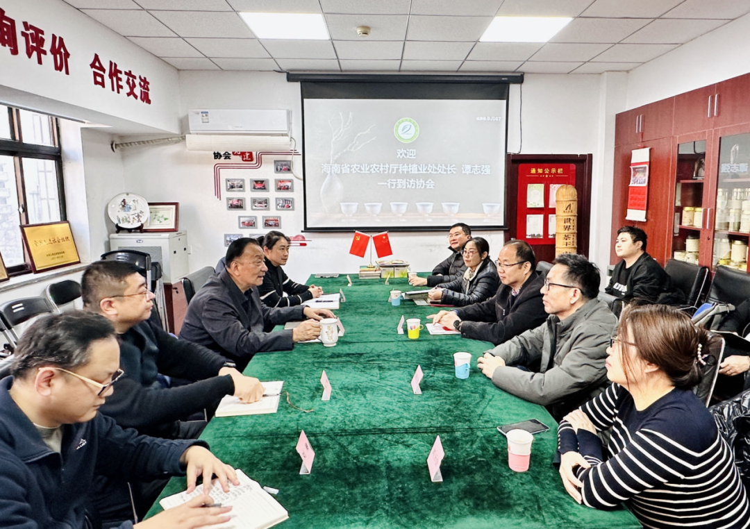 1月4日,中国茶叶流通协会会长、全国茶叶标准化技术委员会主任委员王庆会见了海南省农业农村厅种植业处处长谭志强一行。双方围绕海南茶产业高质量发展、区域公用品牌建设以及未来合作事项等内容进行交流。中国茶叶流通协会副会长姚静波、副监事长申卫伟,海南省茶叶学会副会长、秘书长陈世登等有关单位领导同志参加了座谈。
