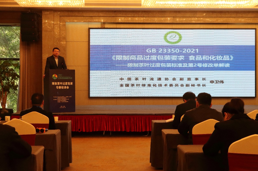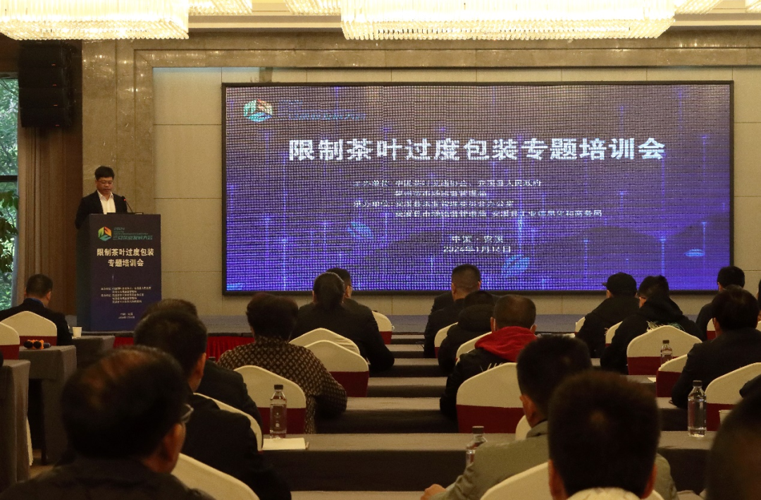 1月16日,为深入贯彻《国务院办公厅关于进一步加强商品过度包装治理的通知》精神,落实茶叶过度包装专项治理行动实施方案,《限制茶叶过度包装专题解读会》作为“2024三安茶产业发展大会”系列活动之一,由中国茶叶流通协会、安溪县人民政府和泉州市市场监督管理局联合在福建省安溪县举办。中国茶叶流通协会副监事长、全国茶叶标准化技术委员会副秘书长申卫伟受王庆会长委托开展专项培训。安溪县有关单位领导,安溪县茶叶协会包装分会,泉州区域内、安溪县包装企业代表和茶叶生产企业代表等近百人参加本次培训。
