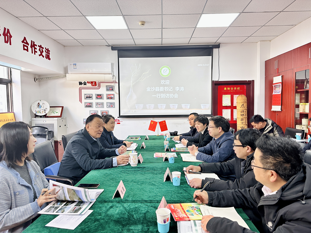 2月29日,中国茶叶流通协会会长、全国茶叶标准化技术委员会主任委员王庆会见了金沙县委书记李涛一行。双方围绕金沙县茶业提质增效、品牌培育提升及茶产业链延伸等相关事项展开了深入的交流,并签署了战略合作协议。中国茶叶流通协会副会长姚静波,秘书长肖星,金沙县人民政府副县长万纯飞等有关领导和同志参加了座谈。