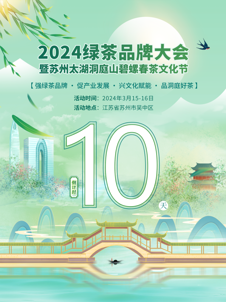10天后,“2024绿茶品牌大会暨苏州太湖洞庭山碧螺春茶文化节”将于3月15日在苏州吴中区举办,以“强绿茶品牌,促产业发展;兴文化赋能,品洞庭好茶”为活动主题,邀请全国绿茶重点产茶县域政府部门领导、绿茶产销区重点企业、行业组织和科研机构、茶界专家学者,新闻媒体代表参加,共品碧螺春茶味,共赏洞庭山美景,共商碧螺春茶合作,共谋中国茶产业发展新思路。