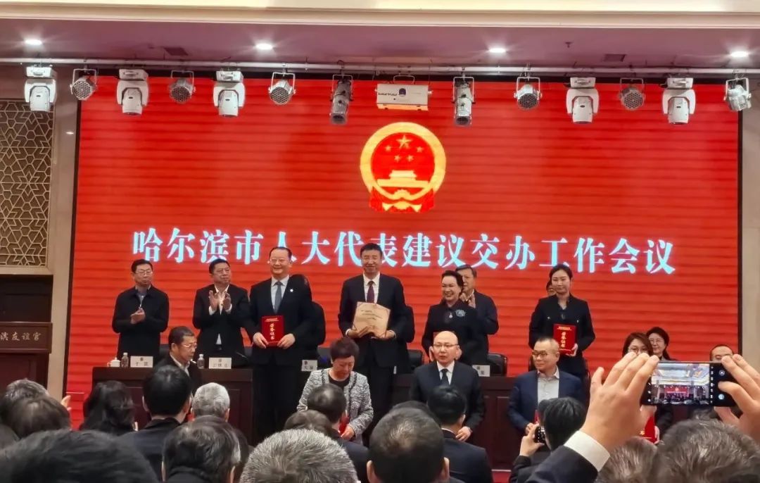 哈尔滨市政府常务副市长李冕、市人大常委会主任孙喆分别发表了讲话。会议通报了2023年度代表建议办理情况和2024年度代表建议办理情况和年代表建议征集情况;宣读了《哈尔滨市人大常委会关于表彰2023年度市人大代表十大履职优秀案例先进个人和承办先进单位的决定》并为获奖个人及单位颁发了证书、奖牌。