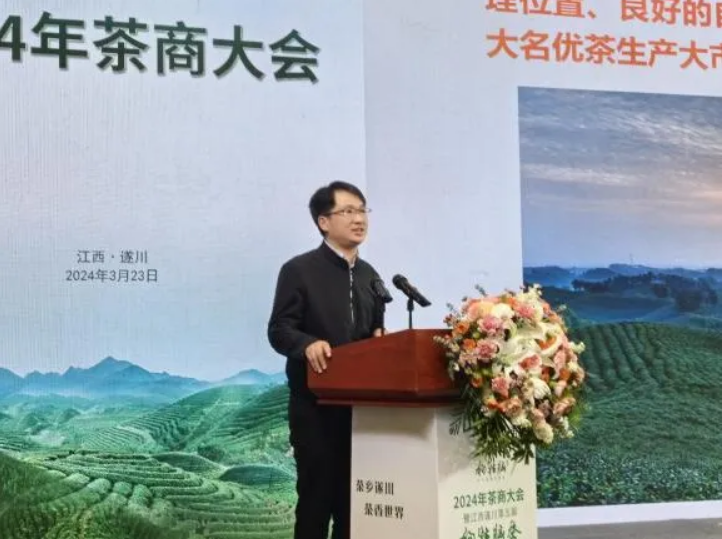 3月23日,2024年茶商大会在江西省遂川县成功举办。中国茶叶流通协会会长、全国茶叶标准化技术委员会主任委员王庆,国家发改委农经司原副司长方言,江西省就业创业服务中心主任郭锦亮,遂川县委书记胡承国、县长罗刚、人大常委会主任刘远生、县政协主席黄书华,中国茶叶流通协会副会长姚静波、周敏、葛联敏、王静,副监事长申卫伟、李勇以及来自北京、山东、黑龙江、辽宁等17个省市的政府有关部门、品牌企业代表、采购商和渠道商负责人共同出席活动。