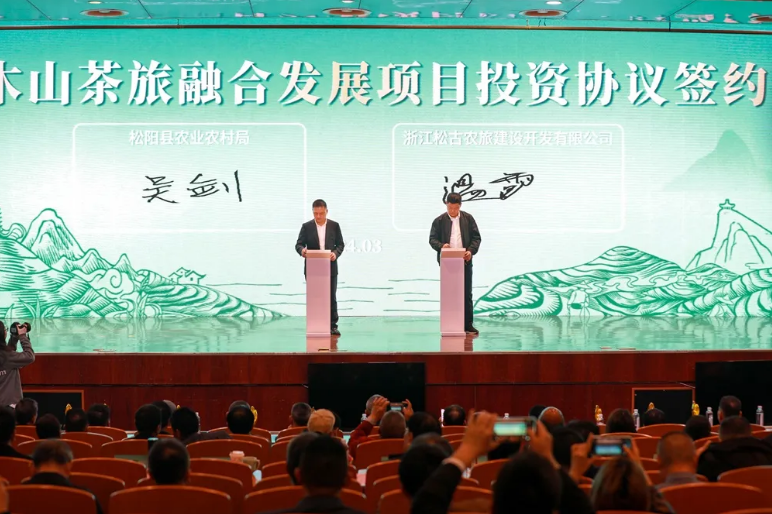 会上,松阳县委副书记、县长梁海刚介绍了松阳茶产业发展概况。松阳县相关负责人就茶产业政策、茶香小镇项目、新扩建茶叶市场项目进行解读和推介,并举行了大木山茶旅融合发展项目投资协议、茶特色肉制品产业园项目投资协议、产销合作协议签约仪式。