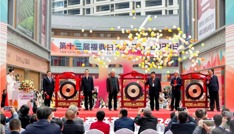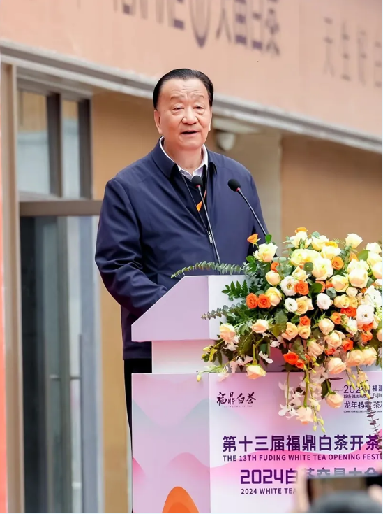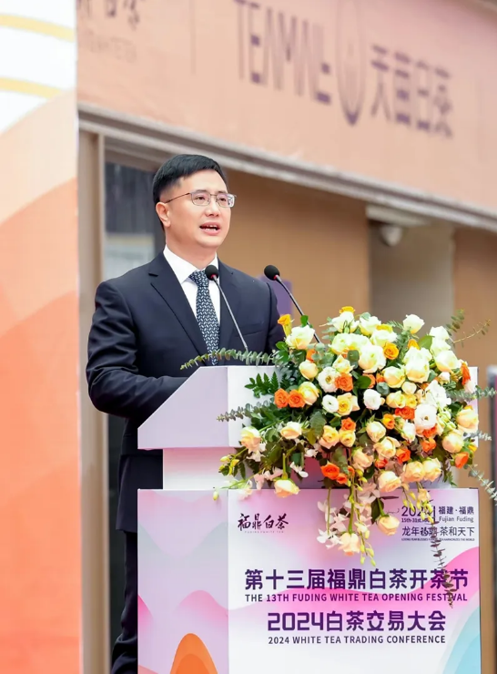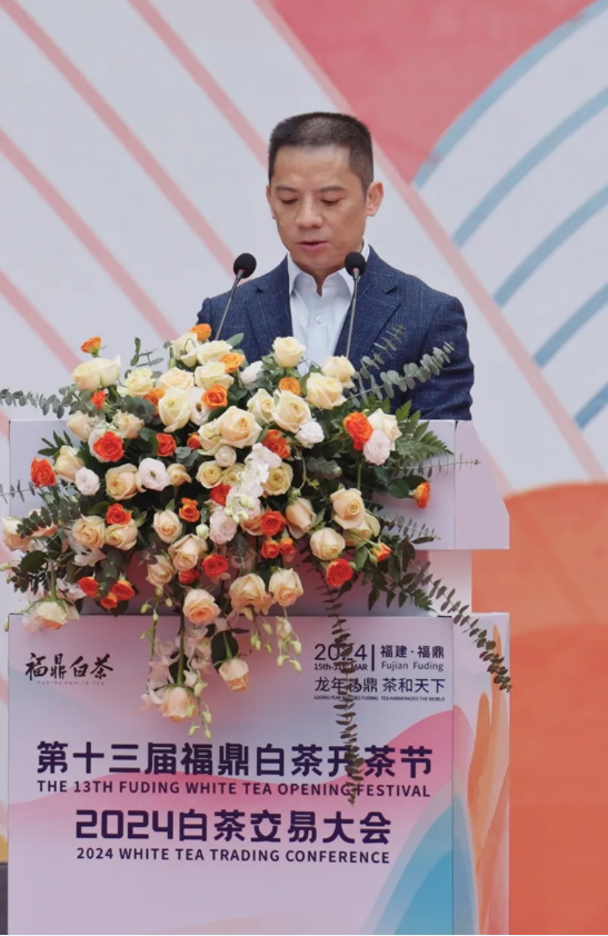 3月28日,2024白茶交易大会 第十三届福鼎白茶开茶节在福鼎开幕。王庆会长出席本次活动,发表讲话并鸣锣开茶。梅宇副会长为“福鼎山海茶旅线”授旗。