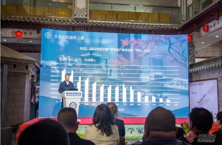 腾冲高黎贡山作为茶马古道的重要节点,拥有悠久的茶文化和丰富的茶资源。中国茶叶流通协会会长、全国茶叶标准化技术委员会主任委员王庆在随后的论坛中对全国的茶叶产业现状,以及云南茶叶产业发展做出分析与建议,他说:“目前茶叶消费市场中,线下通路逐步恢复,电商板块增量趋缓。2023年茶叶线下销售通路相较2019年,店均增比20%—40%,茶叶专业市场,茶馆等地茶叶销售业绩也在缓慢回升。云南茶叶产业则要根据《云南省茶叶产业高质量发展三年行动工作方案(2023—2025)》实施绿色有机深化工程,抓好绿色生态,做好品牌建设,同时依托丰富资源与深厚底蕴,做好文旅融合,用茶旅消费带动茶叶市场回温增长。”