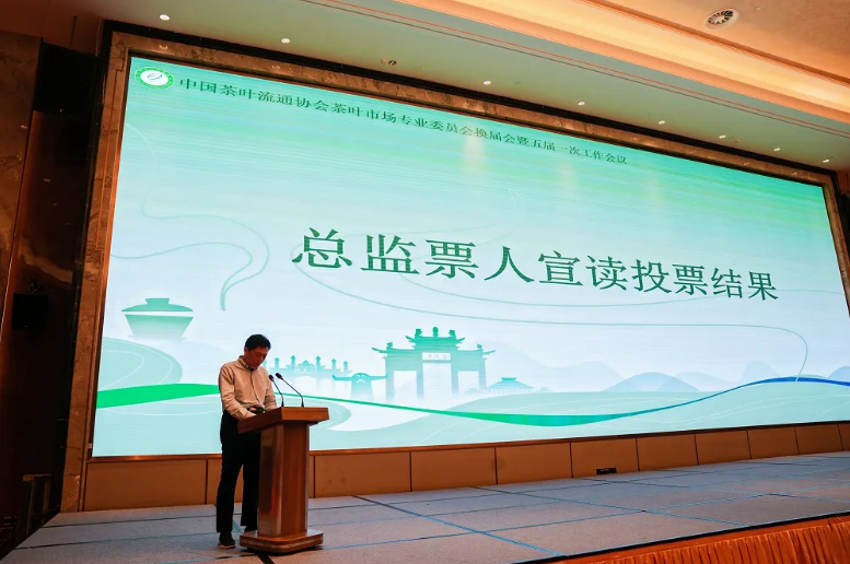 会议审议通过了第四届专委会工作报告,全面总结了第四届市场委自2017年至今的工作成绩。之后,经过紧张、严肃的计票环节,大会总监票人刘勇副会长宣读选举结果:上海帝芙特国际茶业市场经营管理有限公司庞言良董事长当选第五届专委会主任委员,北京二商京华茶业有限公司董事长邢志红等21位代表当选副主任委员,协会综合管理部主任韩丹同志任新一届专委会秘书长。