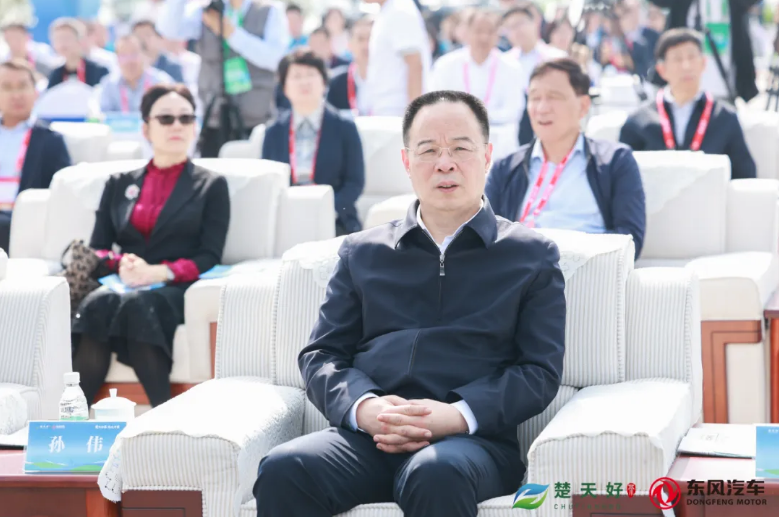 湖北省政协主席、省茶产业链链长孙伟为楚天好茶沿海行车队授旗,并宣布出征。