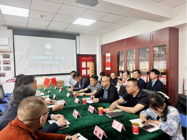 4月25日上午,中共勐海县委书记高江泉一行到访我会,受到中国茶叶流通协会会长、全国茶叶标准化技术委员会主任委员王庆的热情接待。双方围绕如何推进普洱茶产业的高质量发展、提升勐海茶产业的综合效益以及增强普洱茶品牌的市场影响力等议题进行了深入探讨和交流。