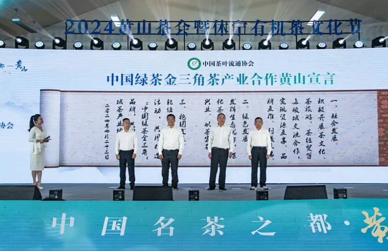 2008年,中国茶叶流通协会、中国国际茶文化国际研究会共同授予安徽休宁、江西婺源、浙江开化“绿茶金三角核心产区”称号。多年来,“绿茶金三角核心产区”始终致力于优质绿茶的生产、传承和创新。他们通过不断优化种植技术、加强品牌建设和推广,使得“绿茶金三角”的知名度不断提高,市场影响力逐渐扩大。为进一步发展有机茶、生态茶,品牌茶,休宁县、婺源县、开化县在本次会议上共同发布“绿茶金三角茶产业合作黄山宣言”。