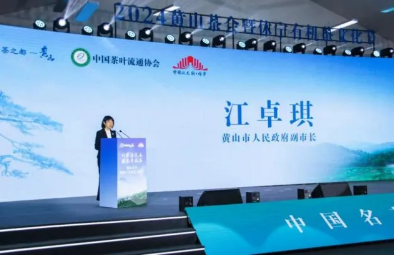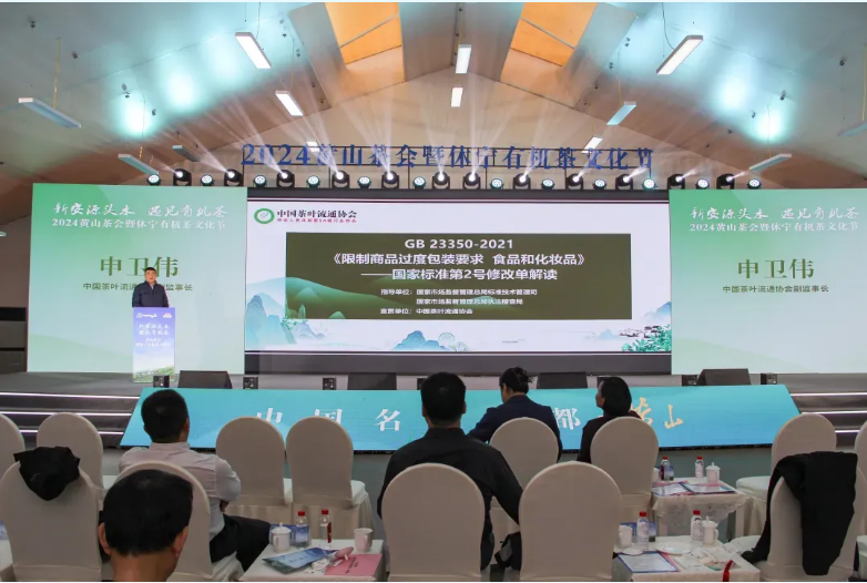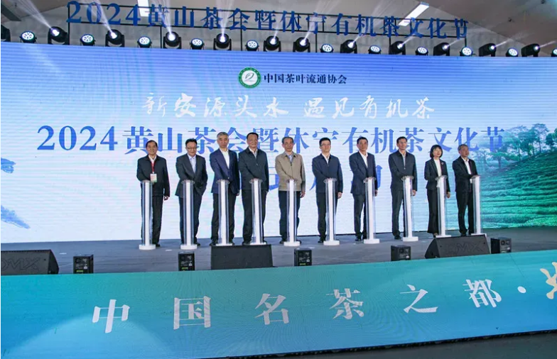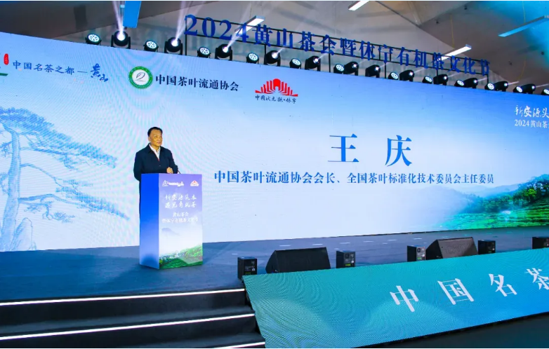 4月23日,2024黄山茶会暨休宁有机茶产销对接会在黄山休宁盛大启幕。中国茶叶流通协会会长、全国茶叶标准化技术委员会王庆出席开幕式、致辞并参加启动仪式。