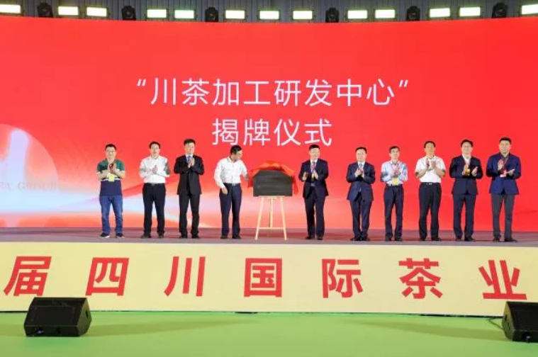 图4 梅宇副会长出席川茶集团新品发布会并见证“川茶加工研发中心”揭牌