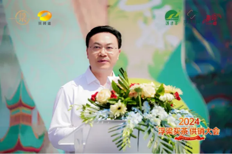 5月18日,2024“浮梁买茶”供销大会在景德镇市浮梁县盛大开幕。中国茶叶流通协会副会长姚静波出席活动,致辞并参加启动仪式。