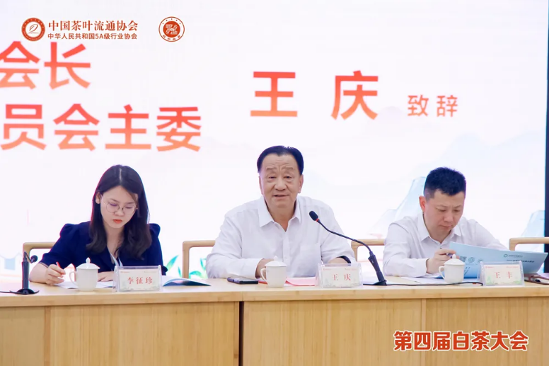 农业农村部种植业司李征珍博士,政和县委副书记、县长王丰,中国茶叶流通协会荣誉会长、四川省茶叶流通协会会长王云,中茶协副会长、上海帝芙特投资集团有限公司董事长庞言良,中茶协副会长、云南白药天颐茶品有限公司总经理黄卫东,柘荣县人大常委会主任陈龙营,福鼎市人民政府副市长提力克·哈力克,松溪县人民政府副县长张亮,政和县人民政府副县长郑韶明及全国20余个省(自治区、直辖市)的省级行业组织领导同志、产区政府代表、地方社团代表等50余人共同出席了会议。中国茶叶流通协会会长、全国茶叶标准化技术委员会主任委员王庆出席会议并致辞。会议由梅宇副会长主持。
