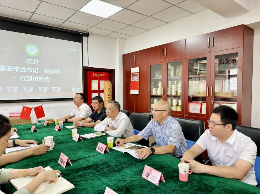 6月3日,福安市委书记周祥祺一行到访我会,受到了中国茶叶流通协会会长、全国茶叶标准化技术委员会主任委员王庆的热情接待。双方围绕坦洋工夫茶品牌建设,龙头企业培育及相关合作事项等议题深入交流。中国茶叶流通协会副会长姚静波、梅宇,福安市人大常委会主任陈昌东,福安市人民政府副市长蓝和鸣等有关领导同志参加座谈。