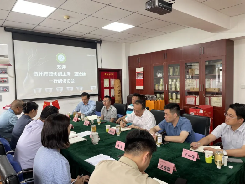 7月11日,贺州市政协副主席覃汝胜一行到访我会,受到中国茶叶流通协会会长、全国茶叶标准化技术委员会主任委员王庆的热情接待。双方围绕贺州市茶产业高质量发展、区域品牌建设与推广及未来合作等事项深入交流。中国茶叶流通协会副会长姚静波、秘书长肖星、贺州市政协副秘书长莫馗等有关领导、同志参加座谈。