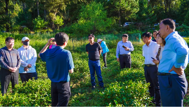 图6 王庆会长一行查看茶园(波密县京藏雪域茶业有限公司茶园)