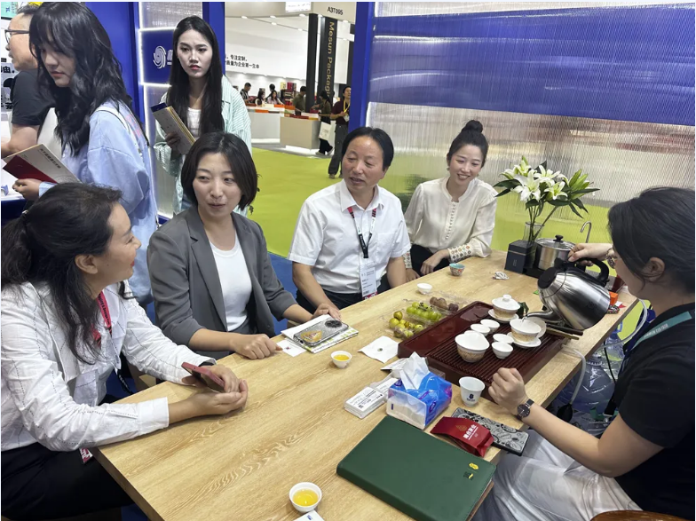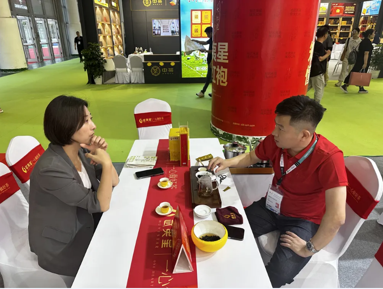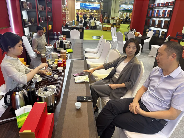 近日,中国茶叶流通协会秘书长肖星在2024中国厦门国际茶产业(秋季)博览会期间,走访了武夷星、柏星龙、万氏留香、香江茶业等多家参展会员企业,了解企业经营现状,倾听会员意见和建议;并与五峰土家族自治县政协党组书记、主席周志蓉,中茶协会副会长、福建品品香茶业有限公司董事长林振传、安徽省祁门红茶发展有限公司董事长王昶,厦门山国饮艺茶业有限公司董事长林玉辉进行工作交流。