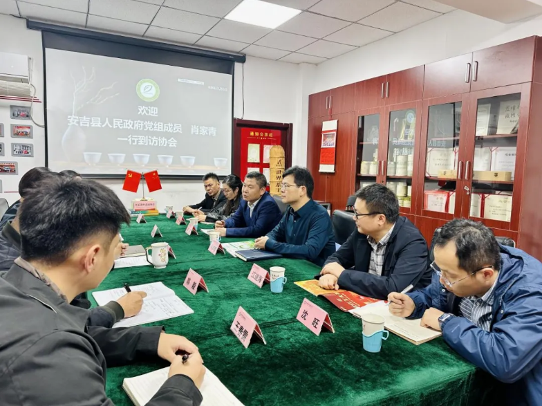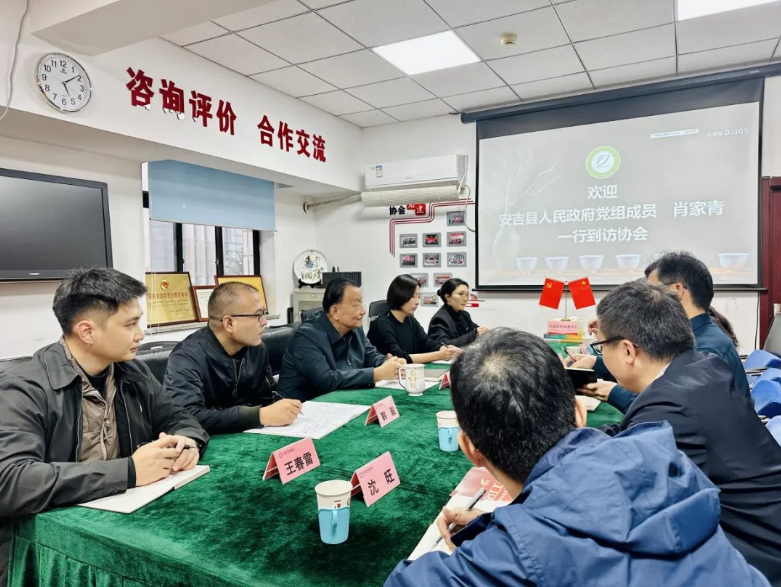 10月24日,安吉县人民政府党组成员肖家青一行到访我会,受到了中国茶叶流通协会会长、全国茶叶标准化技术委员会主任委员王庆的热情接待。双方围绕茶产业转型升级、产业链延伸、市场拓展以及未来合作事项等内容深入交流。中国茶叶流通协会秘书长肖星,安吉县农业农村局党委书记、局长刘斌等有关领导同志参加座谈。