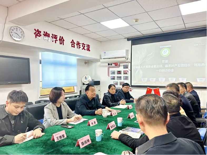 11月6日,谷城县人大常委会副主任、县茶叶产业链链长刘海燕一行到访我会,受到了中国茶叶流通协会会长、全国茶叶标准化技术委员会主任委员王庆的热情接待。双方围绕谷城县茶产业新质生产力的打造,龙头企业的培育及未来合作事项进行洽谈。中国茶叶流通协会副会长姚静波,秘书长肖星,谷城县农业农村局党组书记、局长罗立峰,谷城县供销社党组书记、主任翁永忠等有关领导同志参加座谈。