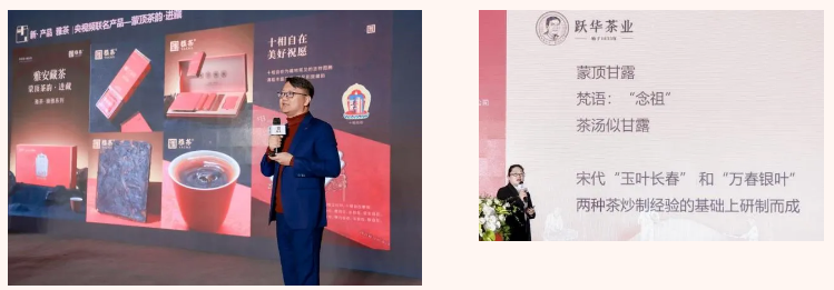 在茶企推介环节,四川雅茶控股集团有限公司、四川蒙顶山跃华茶业集团有限公司、四川蒙顶山蒙典茶业有限公司、四川姜氏茶业有限公司等四家雅安茶企代表上台推介,展示了各自企业的优质茶叶产品和品牌特色。
