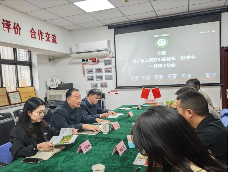 11月13日,昌宁县人民政府副县长张强中一行到访我会,受到了中国茶叶流通协会会长、全国茶叶标准化技术委员会主任委员王庆的热情接待。双方围绕昌宁县培育提升茶品牌,持续优化营销体系及相关合作事项等议题深入交流。中国茶叶流通协会副会长梅宇等有关领导同志参加座谈。
