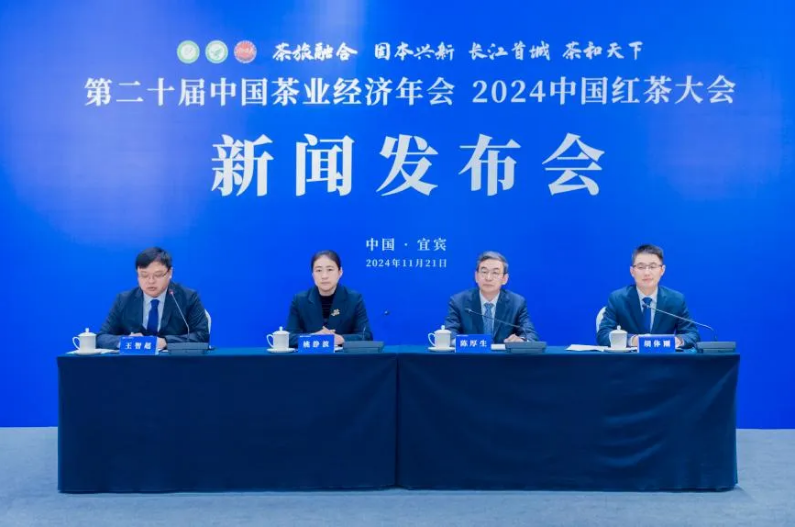 2024年11月21日,第二十届中国茶业经济年会 2024中国红茶大会召开新闻发布会。中国茶叶流通协会副会长姚静波、宜宾市政协副主席陈厚生、宜宾市农业农村局机关党委书记胡体刚出席。