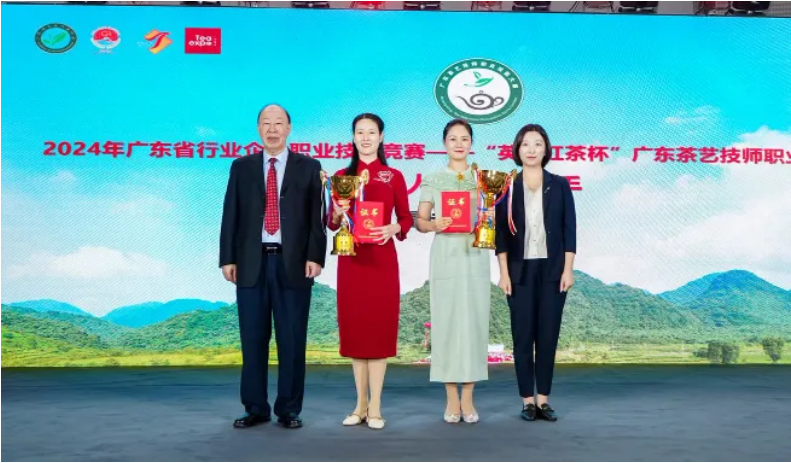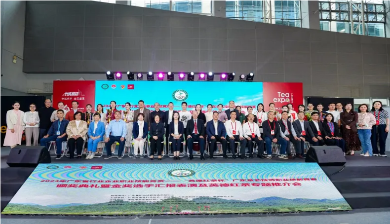 中国茶叶流通协会荣誉会长、广东省茶业行业协会会长穆有为,清远市农业农村局副局长李敏怀,英德市人大常委会副主任、英德市总工会党组书记/主席丘文彪,广州益武国际展览有限公司董事长胡卫红以及参赛选手、技术指导等嘉宾共同出席了本次颁奖典礼。