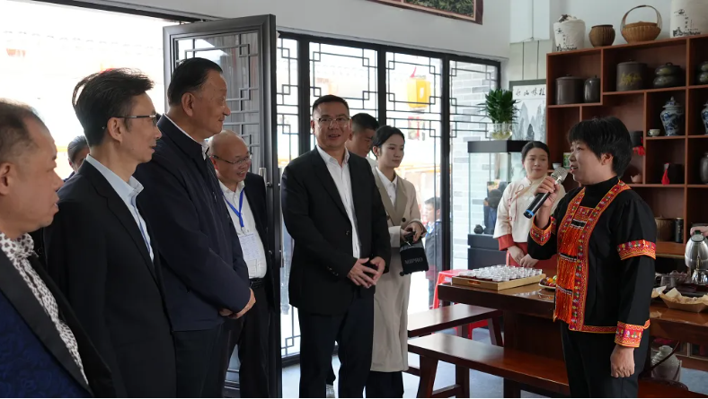 祝雪兰主任向王庆会长介绍了她在传承、发扬六堡茶制作技艺、发扬瑶族文化助推乡村经济发展方面的宝贵经验。王庆会长对祝雪兰主任在推动茶文化传承与创新方面所做的努力表示赞赏,高度评价了六堡茶产业在守护传统文化精髓、激发创新发展活力方面所取得的显著成就,并对六堡茶品牌推广、数字化建设以及未来发展方向提出了有关建议。