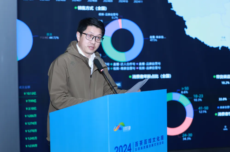 会议首先由泉州一茶百香茶有限公司董事长姜昆介绍了百茶电商大数据中心的建设情况,强调了数据在茶叶电商领域发展中的作用。姜总谈到,数据是驱动茶叶电商业务增长的核心资源,百茶电商大数据中心是一个整合分析服务的平台,专注于通过数据和传媒来辅助茶行业的发展,为茶行业提供运营数据和营销策略支持,赋予企业经营决策的“智慧大脑”。