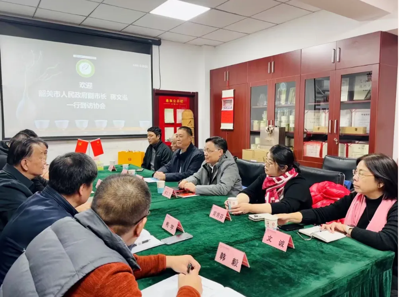 12月17日,韶关市人民政府副市长蒋文泓一行到访我会,受到了中国茶叶流通协会会长、全国茶叶标准化技术委员会主任委员王庆的热情接待。双方围绕韶关市茶产业发展、龙头企业培育及相关合作事项等议题深入交流。中国茶叶流通协会副会长姚静波、梅宇,副监事长申卫伟,韶关市农业农村局副局长赵金刚及韶关市茶企代表等有关领导同志参加座谈。