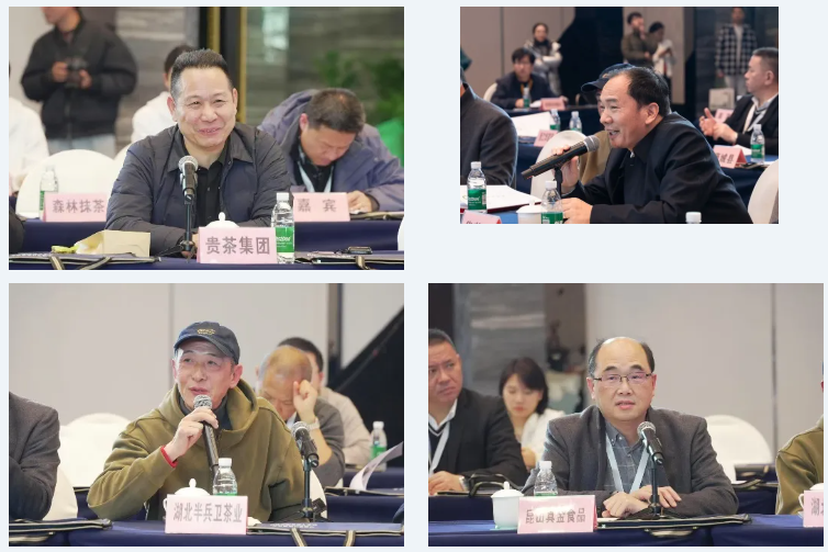 在主题交流环节,贵州铜仁贵茶茶业常务副总经理华连著、浙江华茗园茶业董事长胡家华,湖北半兵卫茶业董事长林日发、昆山真金食品新零售事业部长谢秋祺围绕抹茶原料、生产加工、产品研发,以及抹茶产业未来发展趋势等议题,与各委员单位进行了交流讨论。