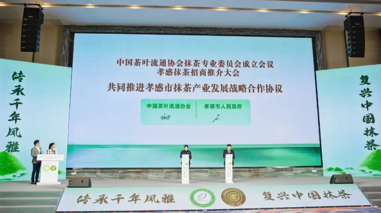 会上,中国茶叶流通协会与孝感市人民政府签订了共同推进孝感市抹茶产业发展战略合作协议。