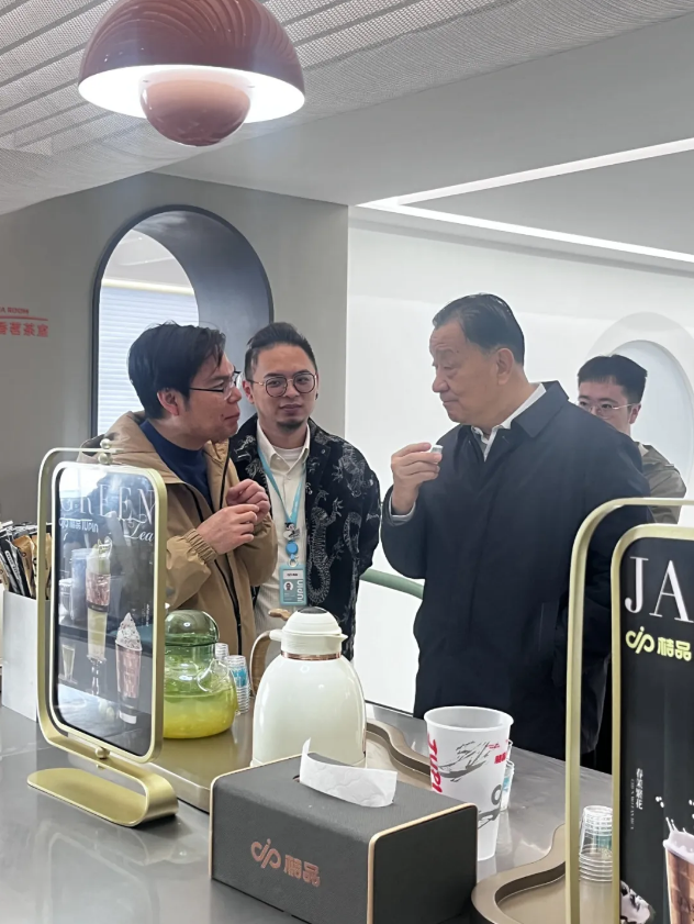 在忆美园(福建)农业开发有限公司,王庆会长、张作兴副会长与该公司董事长黄云等主要领导进行了会面,并听取了忆美园(福建)农业开发有限公司黄云对品牌发展及新茶饮方面关于未来规划的详细介绍。