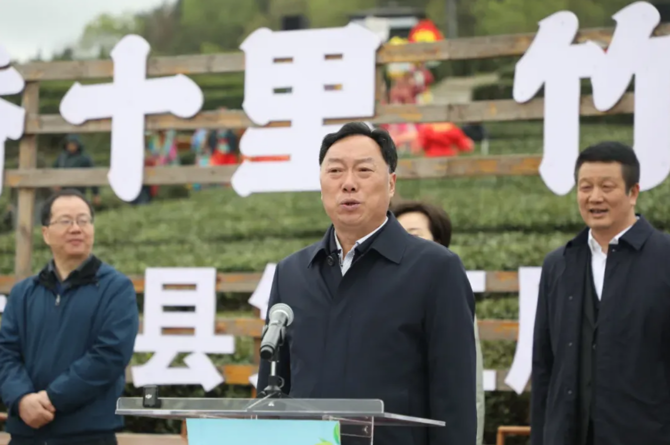 竹山县委书记汪正义,县委副书记、县长王丽媛,县人大常委会主任毛昌盛,县政协主席龚世华等县领导,中茶协副会长、萧氏集团董事长肖勇等茶企负责人及媒体记者共同出席活动,共品硒茶之韵,共谋产业高质量发展。