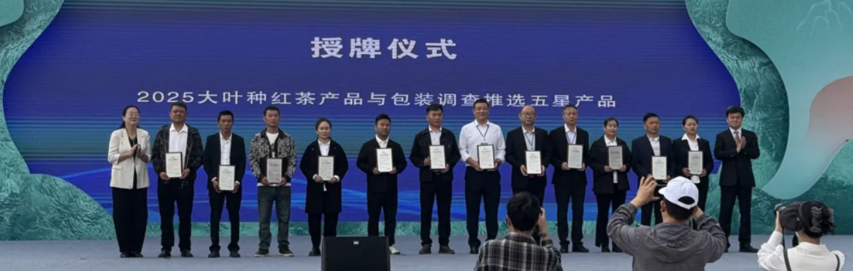 会上还发布了2025年大叶种红茶产品及包装推选活动结果。云南白药天颐茶品有限公司、勐海雨林古茶坊茶叶有限责任公司、凤庆陈升红茶业有限责任公司、北京吴裕泰茶业股份有限公司、广东茶叶进出口有限公司等企业的红茶品牌入选五星产品名单。